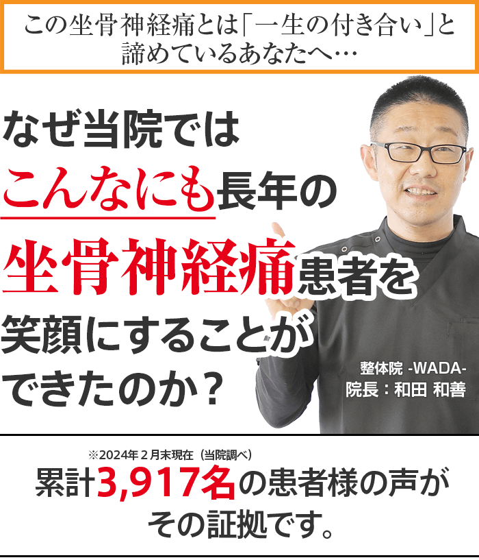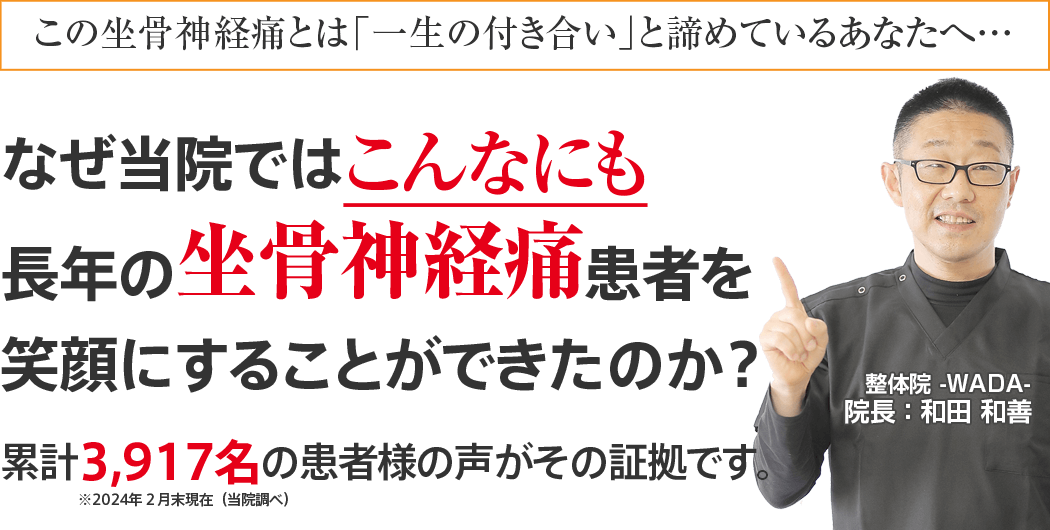 飯塚市の坐骨神経痛専門 整体院-WADA-に来院して、二度とその痛みに我慢することのない人生を手に入れる道。
